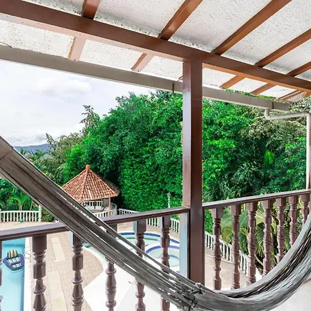 Villa With Swimming Pool, Jacuzzi And Sauna is located about 10 minutes by car from Iglesia Anapoima, offers views of the garden and provides guests with a hot tub and a sauna. A mini-bar, a work desk, and coffee/tea making equipment are featured in the rooms, while a microwave and a refrigerator are provided in a fully furnished kitchen.